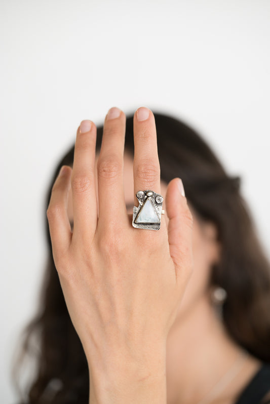 Fujisan Moonstone on Silver Statement Ring 🗻
