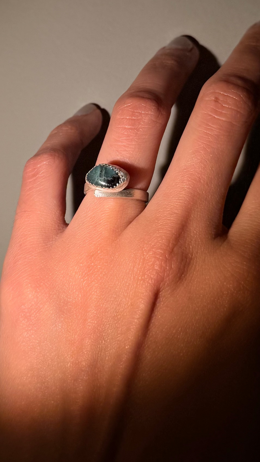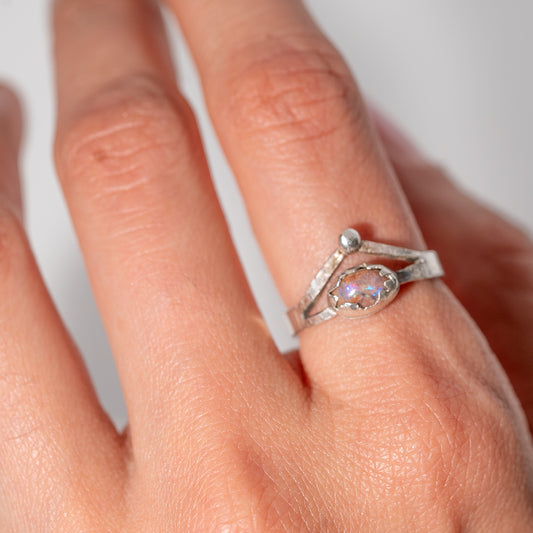 Nebulosa Ring Blue Australian Opal Rough Cut Silver