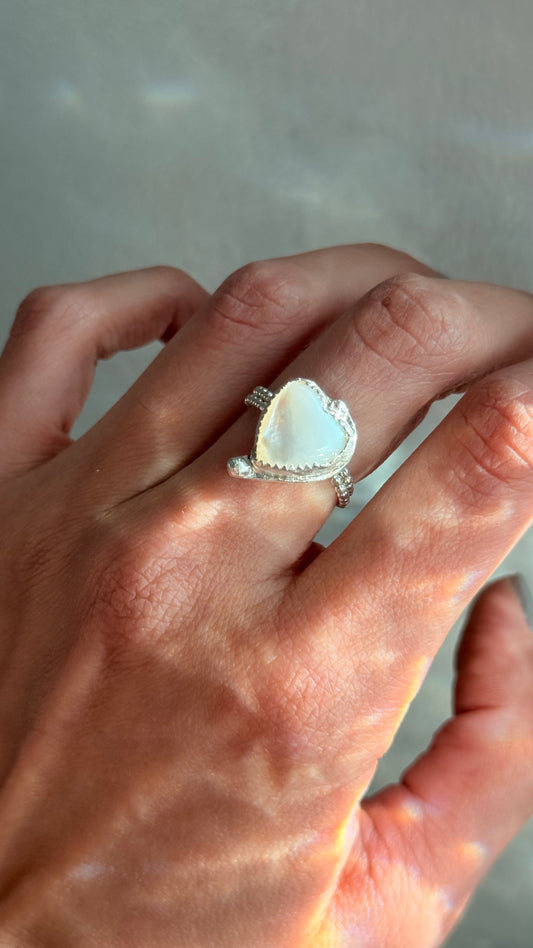 Te amo ✨Oh oh oh ouh!✨ – Mother of Pearl Heart Ring in Sterling Silver
